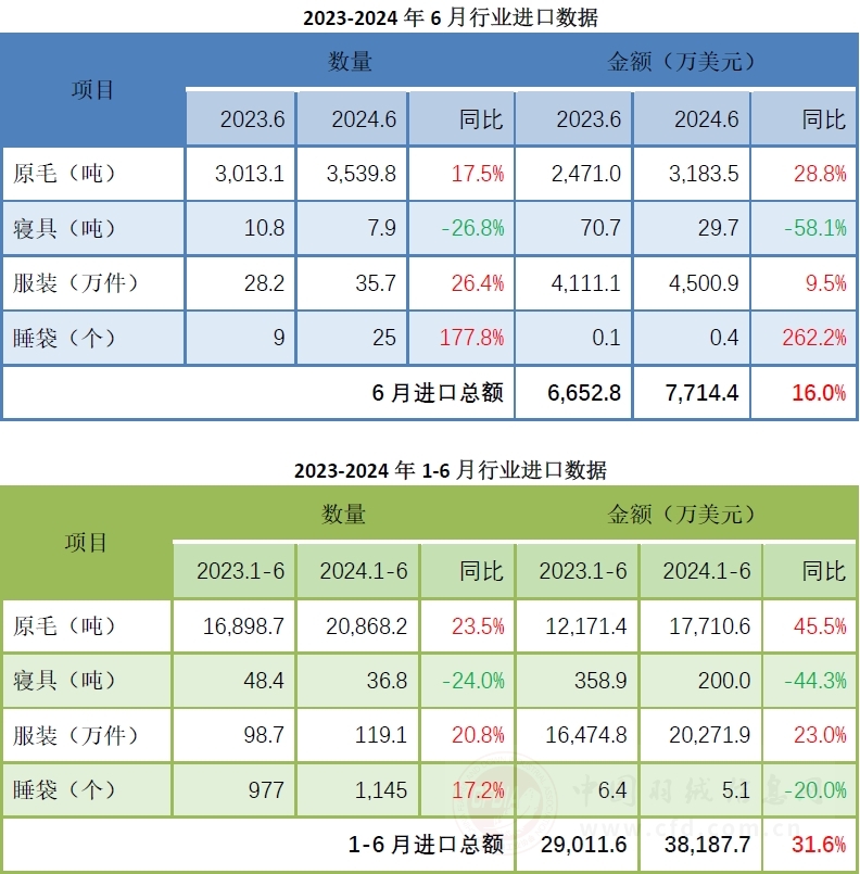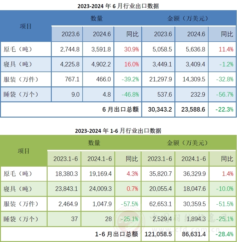 6月羽絨行業(yè)出口降幅繼續(xù)縮窄 進(jìn)口保持快速增長