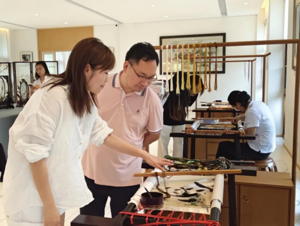 魏朋一行來到了天虹現(xiàn)代蠶業(yè)體驗(yàn)園,在參觀過程中,薛憶向魏朋副書記一行詳細(xì)介紹了公司的發(fā)展歷程、產(chǎn)品系列以及未來發(fā)展規(guī)劃。作為知名的蠶桑企業(yè),天虹絲綢以其精湛的工藝和卓越品質(zhì)贏得了廣泛贊譽(yù)。參觀團(tuán)對(duì)天虹絲綢在傳承與創(chuàng)新方面取得的成就表示高度贊賞,并就如何進(jìn)一步推動(dòng)校企合作、促進(jìn)產(chǎn)學(xué)研一體化發(fā)展進(jìn)行了深入探討。
