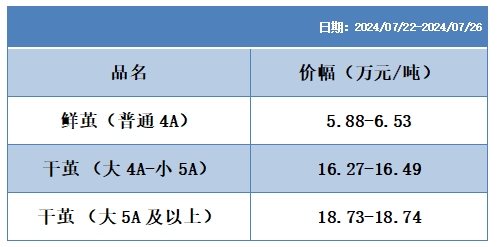 根據(jù)本周蠶繭報價按照指數(shù)方案形成的基準(zhǔn)品價格區(qū)間