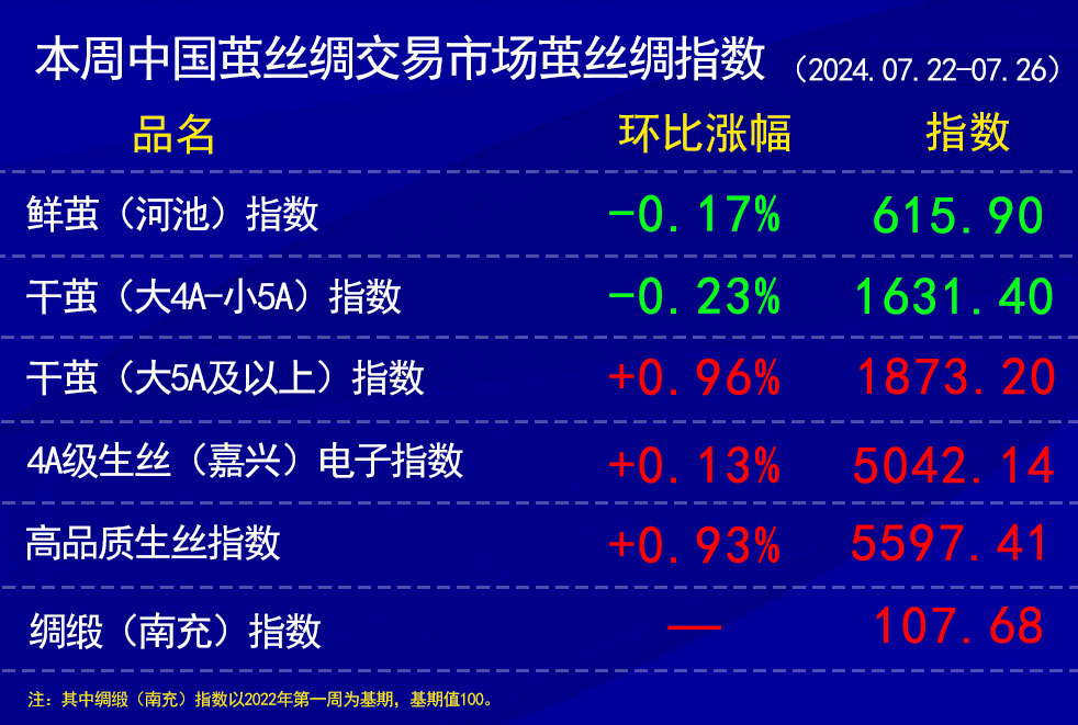 本周中國繭絲綢交易市場繭絲綢指數(shù)