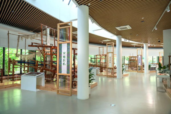 該部分主要展出漢錦織機(jī)、宋錦織機(jī)、杭羅織機(jī)、綾絹織機(jī)等近20臺(tái)織機(jī)及其對(duì)應(yīng)織物,并輔以織機(jī)模型和準(zhǔn)備工具等。
