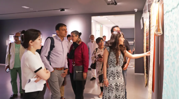 座談交流前,印度文藝界代表團一行參觀了蘇豪品牌中心,蘇豪絲綢的工藝之美、匠心之美引得代表團一行流連駐足。中國人民對外友好協(xié)會亞非工作部、省外辦民間交流促進處、南京傳媒學(xué)院及集團黨委宣傳部、蘇豪文化集團相關(guān)人員參加活動。