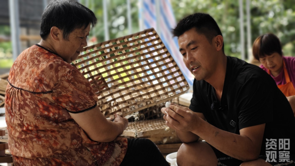 眼下已進(jìn)入夏繭收購尾聲,7月29日上午,記者來到位于樂至縣石佛鎮(zhèn)唐家店村的聚鵬農(nóng)業(yè)蠶桑養(yǎng)殖基地時,負(fù)責(zé)人張魏正在為村民講授摘繭、選繭的技巧。