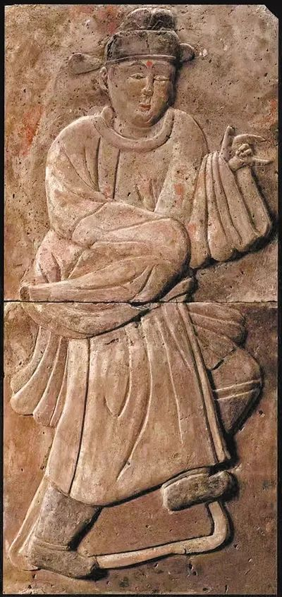 中華文化的形成與發(fā)展始終伴隨著對(duì)外來文化的借鑒與吸納。五代馮暉墓出土的50多塊彩繪浮雕磚也是本次展覽的一大亮點(diǎn)。浮雕磚上栩栩如生地刻畫出28名男女藝人演奏的場(chǎng)景,其中有兩名著男裝、戴幞頭的女性舞者,她們穿長(zhǎng)袍、束腰帶、蹬烏靴,姿態(tài)活潑奔放。正如《唐書·五行志》記載:“天寶初,貴族及士民好為胡服胡帽,婦人則簪步搖釵,衿袖窄小。”唐朝將境外西北部游牧民族和外國(guó)人統(tǒng)稱為“胡人”,緊身、圓領(lǐng)、開衩的胡服形制在長(zhǎng)安等地風(fēng)行一時(shí)。此時(shí)期唐朝女子也出現(xiàn)了戴胡帽、穿胡服、著男裝等現(xiàn)象,展現(xiàn)了唐朝女性獨(dú)立、時(shí)尚的特點(diǎn)和追求自由、平等的心態(tài),也反映出唐朝對(duì)外來文化的開放與包容。