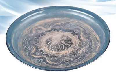 唐時(shí),長(zhǎng)安城內(nèi)商賈云集、邸店林立,金銀器、寶石、琉璃、香料和絲綢、瓷器、茶葉等西來東往的貨物在此中轉(zhuǎn)交易。本次展覽中,一件出土于法門寺地宮的“八瓣團(tuán)花紋描金琉璃盤”吸引參觀者紛紛駐足欣賞。這件造型精美的藍(lán)色琉璃盤產(chǎn)自地中海東岸,經(jīng)絲綢之路來到中國(guó)。它盤沿外折、腹壁斜收、盤底心凸起,盤內(nèi)布滿紋飾,中心為八瓣蕉葉狀圍成的團(tuán)花,巧妙運(yùn)用刻紋、釉料彩繪、描金等多種工藝,彰顯東西方審美碰撞交融下的和合之美。與琉璃盤一同出土的琉璃器皿中,有的具有東羅馬元素,有的體現(xiàn)波斯風(fēng)格,顯示出唐朝對(duì)異域文化的開放、包容與欣賞。