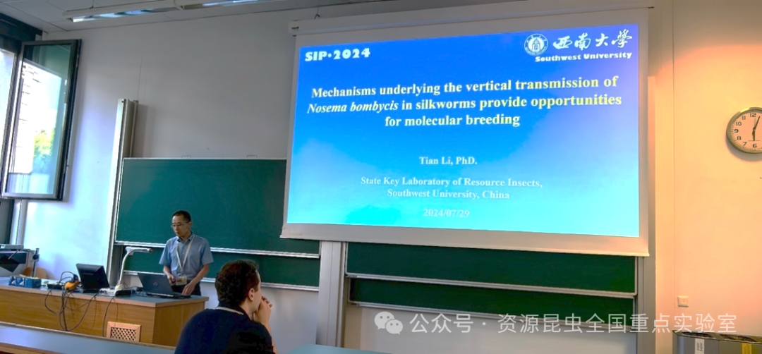 資源昆蟲高效養(yǎng)殖與利用全國重點實驗室副主任李田研究員及青年骨干陳潔副教授參加了本次盛會。李田研究員應(yīng)邀以“Mechanisms underlying the vertical transmission of Nosema bombycis in silkworms provide opportunities for molecular breeding”為題作了大會報告,分享團隊在解決困擾蠶業(yè)數(shù)百年的家蠶微粒子病“母傳子”問題上取得的突破性進展。陳潔副教授作了題為“A protease associated with microsporidian spore germination”的交流報告,展示了課題組圍繞微孢子蟲特殊侵染方式——發(fā)芽相關(guān)分子機制的最新進展。會議報告不僅展示了最新研究成果,還激發(fā)了與會專家對于微孢子蟲關(guān)鍵科學(xué)問題的深入思考與廣泛交流。