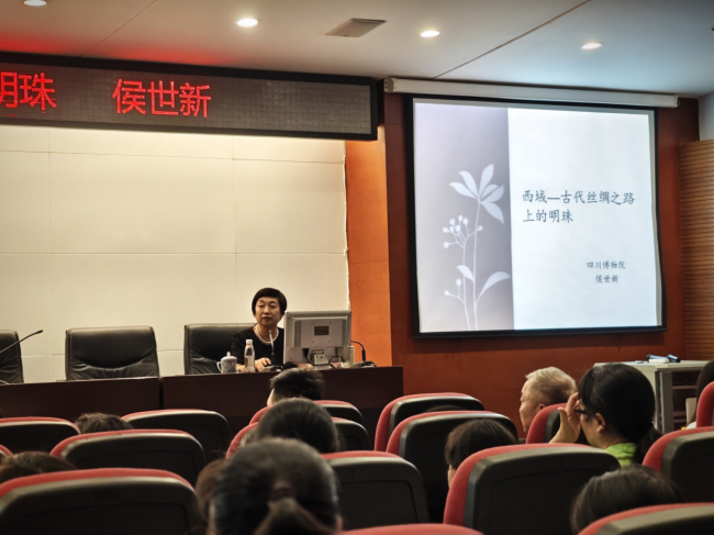 7月27日下午,在成都金沙遺址博物館,新疆維吾爾自治區(qū)博物館原館長、四川博物院首席專家侯世新帶來“西域—古代絲綢之路上的明珠”主題講座,從新疆的地理概貌、絲綢之路促進文明交流、絲綢之路與蜀錦等方面為大家答疑解惑。