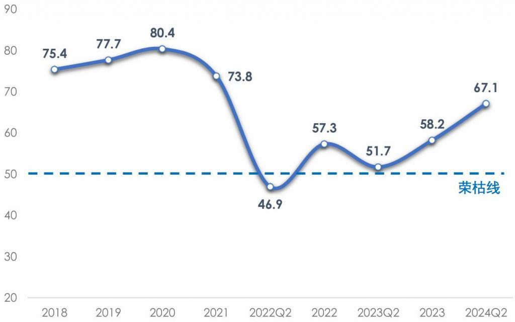 2024年上半年,外部環(huán)境復(fù)雜性嚴峻性不確定性明顯上升、國內(nèi)結(jié)構(gòu)調(diào)整持續(xù)深化等帶來新挑戰(zhàn),但宏觀政策效應(yīng)持續(xù)釋放、外需有所回暖、新質(zhì)生產(chǎn)力加速發(fā)展等因素也形成新支撐。我國產(chǎn)業(yè)用紡織品行業(yè)的市場需求總體回暖,新冠肺炎疫情帶來的需求大幅波動的影響已經(jīng)基本消退,行業(yè)工業(yè)增加值增速自2023年年初以來重回上升通道,但部分應(yīng)用領(lǐng)域需求的不確定性和各類潛在風險影響著行業(yè)當前的發(fā)展和對未來的預(yù)期。根據(jù)協(xié)會調(diào)研,2024年上半年我國產(chǎn)業(yè)用紡織品行業(yè)景氣指數(shù)為67.1,較2023年同期(51.7)顯著回升(圖1)。