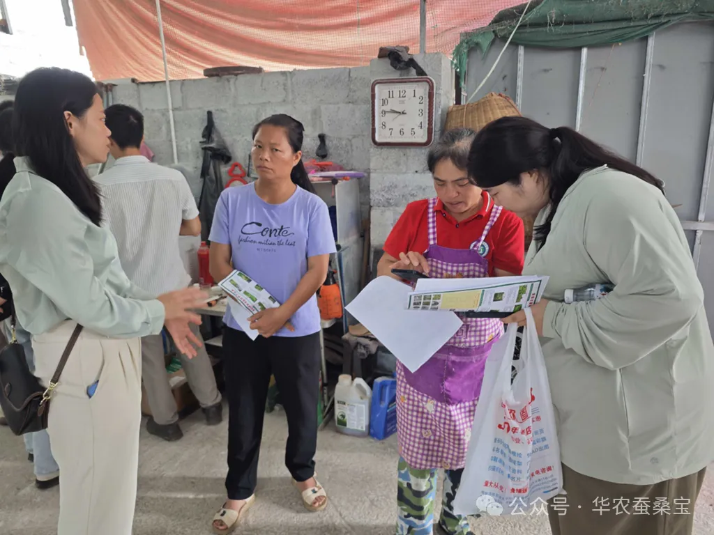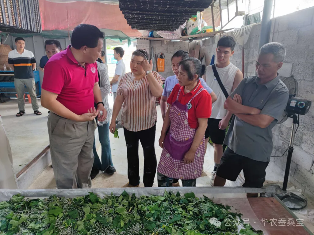13日,劉吉平團(tuán)隊(duì)前往馬山縣石塘村,探訪了該地的蠶戶,并就蠶室設(shè)施及桑葉飼養(yǎng)過程中的消毒細(xì)節(jié)給予了專業(yè)而詳盡的建議。