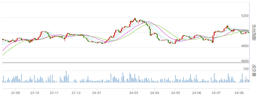 20/22D商檢4A級(jí)生絲:今日(周四)的盤面各遠(yuǎn)近合約價(jià)格有所下跌,成交量較昨日放大些。隨著時(shí)間的推移,部分繅絲企業(yè)近期生產(chǎn)和銷售的重心在交儲(chǔ)之中,240925合約繼續(xù)在減倉;250325生絲合約價(jià)格今日降幅相對(duì)較大些,今日收盤在5日到60均線的各均線之下,技術(shù)指標(biāo)顯示較為凌亂,仍在反復(fù)震蕩中尋求空間。