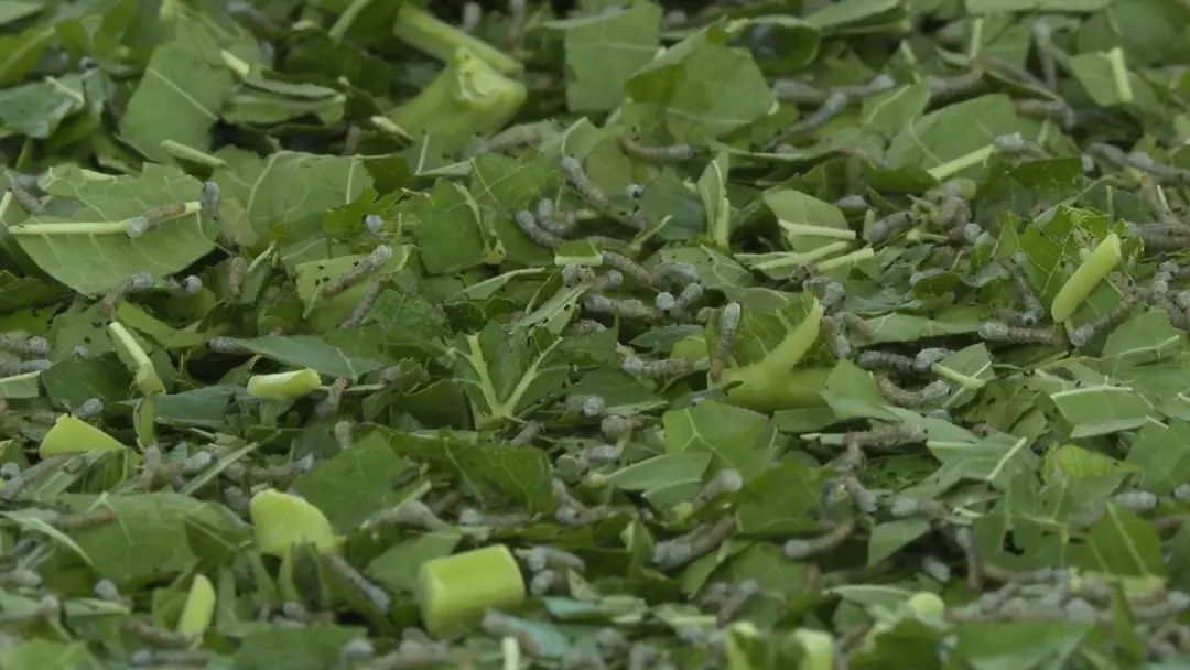 初秋時(shí)節(jié),萬(wàn)物漸豐。在楚雄市東華鎮(zhèn)東華村委會(huì)夸苴五組的蠶?;乩铮B行成片的桑樹(shù)郁郁蔥蔥、長(zhǎng)勢(shì)旺盛,一批工人十分麻利地把采摘到的桑葉放到籃子內(nèi);蠶室內(nèi),另一批工人將剛采摘的桑葉切碎,均勻撒在蠶床,一只只蠶寶寶“慵懶”地依附在新鮮翠綠的桑葉上,蠕動(dòng)著白色的身體“瘋狂”進(jìn)食。