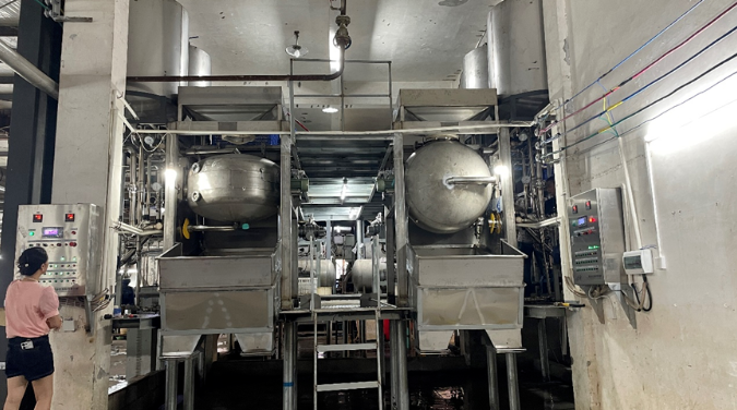 2024年7月,公司在原有2臺減壓自動煮繭機的基礎(chǔ)上又新上了2臺SR3020-8型減壓自動煮繭機,于8月初投入生產(chǎn)運行,淘汰原有煮繭設(shè)備全部升級為減壓自動煮繭機,滿足了8組自動繅生產(chǎn)高品位生絲的需要。