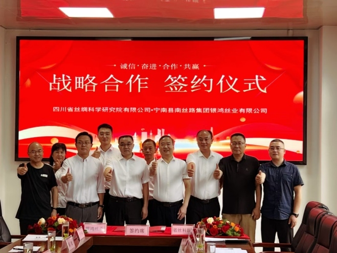 南絲路集團(tuán)銀鴻絲業(yè)有限公司是國(guó)際國(guó)內(nèi)最大6A級(jí)優(yōu)質(zhì)生絲生產(chǎn)基地,擁有35組自動(dòng)繅絲機(jī)、年產(chǎn)1200噸高等級(jí)生絲生產(chǎn)規(guī)模,是我國(guó)高等級(jí)生絲生產(chǎn)的標(biāo)桿企業(yè)。2024年6月南絲路集團(tuán)銀鴻絲業(yè)有限公司與四川省絲綢科學(xué)研究院開展技術(shù)合作,以院企合作的方式進(jìn)行科技攻關(guān)、創(chuàng)新研究、成果轉(zhuǎn)化等技術(shù)服務(wù)工作。