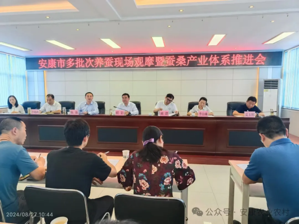 8月27日,陜西省安康市多批次養(yǎng)蠶現(xiàn)場會暨現(xiàn)代蠶桑技術(shù)體系工作會在石泉縣召開,旨在加大新技術(shù)、新機(jī)具、新模式推廣,促進(jìn)多批次養(yǎng)蠶擴(kuò)規(guī)模,提高蠶桑產(chǎn)業(yè)規(guī)模效益。市農(nóng)業(yè)農(nóng)村局副局長任巖、省蠶桑絲綢行業(yè)協(xié)會副會長兼秘書長劉洋出席會議并講話,市蠶桑產(chǎn)業(yè)發(fā)展中心主任陳康主持會議,石泉縣農(nóng)業(yè)農(nóng)村局主要負(fù)責(zé)人致辭。市農(nóng)業(yè)農(nóng)村局相關(guān)科室、各縣區(qū)農(nóng)業(yè)農(nóng)村局分管領(lǐng)導(dǎo)或業(yè)務(wù)負(fù)責(zé)人、市蠶桑產(chǎn)業(yè)中心科級以上干部、省市相關(guān)科研、蠶種生產(chǎn)單位負(fù)責(zé)人及蠶桑產(chǎn)業(yè)經(jīng)營主體代表等參加會議。