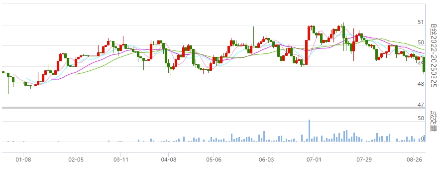 今日(2024年08月30日,周五)中國繭絲綢交易市場生絲電子指數(shù)下跌0.77%報(bào)收于4907.91點(diǎn),本周生絲指數(shù)累計(jì)下跌1.50%,本月生絲指數(shù)累計(jì)下跌2.46%。B絲2022D(商檢4A級(jí)生絲):240925合約下跌0.48萬元報(bào)收于49.41萬元;250325合約下跌0.69萬元報(bào)收于48.75萬元。