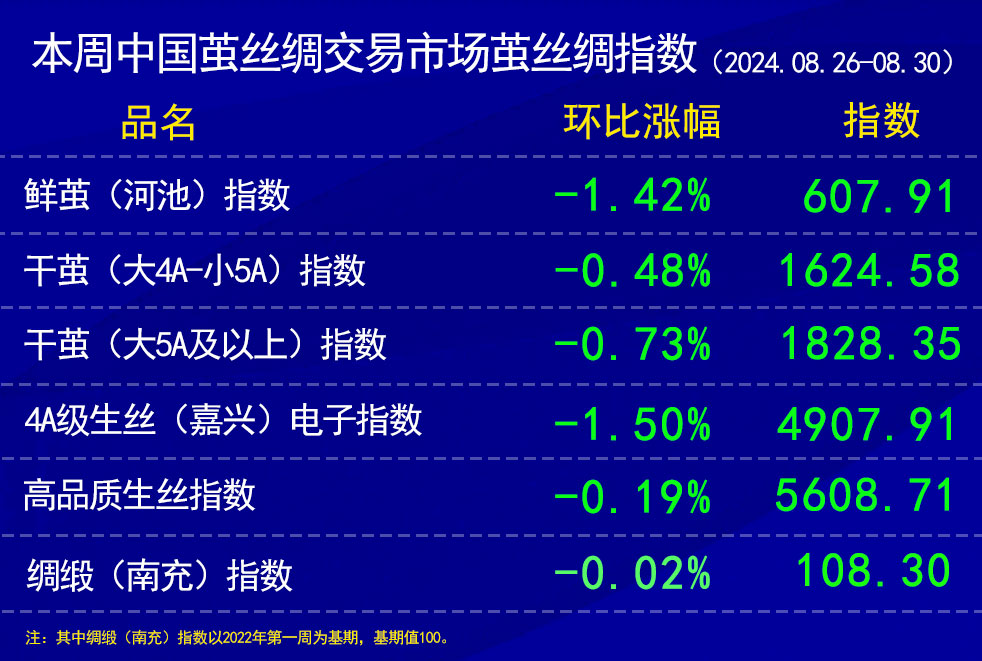 本周中國繭絲綢交易市場繭絲綢指數(shù)