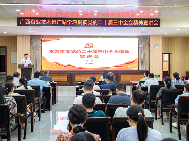 為深入學(xué)習(xí)貫徹黨的二十屆三中全會(huì)精神,8月30日上午,廣西蠶業(yè)技術(shù)推廣站召開學(xué)習(xí)貫徹黨的二十屆三中全會(huì)精神宣講會(huì),副站長(zhǎng)韋偉進(jìn)行宣講,全站黨員干部150多人參加宣講會(huì)。