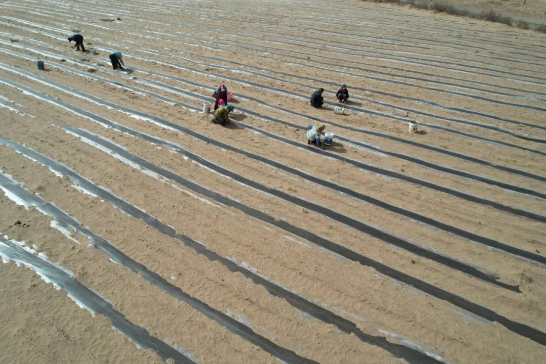 工人扦插蒿柳
