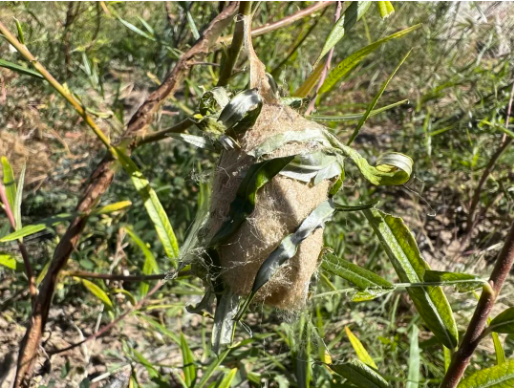 春華秋實(shí),歲物豐成。九月的克什克騰,秋意漸濃,放眼望去,滿目金黃,然而走進(jìn)托河林場蒿柳養(yǎng)蠶實(shí)驗(yàn)基地卻依然是滿目青翠。2024年4月,在內(nèi)蒙古沃峰農(nóng)業(yè)科技發(fā)展有限公司技術(shù)人員的指導(dǎo)下,蒿柳養(yǎng)蠶16畝實(shí)驗(yàn)基地開始翻整土地、鋪上滴灌、安裝水栓、扦插蒿柳,經(jīng)過一個(gè)夏季的“野蠻”生長,當(dāng)初栽種的20厘米的小柳條,已經(jīng)枝繁葉茂、精神抖擻,成活率達(dá)95%以上。溫潤的陽光輻射下來,亮麗了遍地的青枝綠葉。一棵棵蒿柳,枝葉繁茂,一條條胖乎乎、圓滾滾的秋蠶趴在不同的枝葉上,肥美可愛。綠色的秋蠶如翡翠閃光,晶瑩明艷,它們正在忙碌著生命的延續(xù),有的在蠕動(dòng),有的在啃食,有的蜷縮靜臥,有的昂首張望;早熟的秋蠶已經(jīng)開始吐絲結(jié)繭,正在辛勤建造生存的窩巢,循序完成由蠶化蛹的異變。該實(shí)驗(yàn)?zāi)壳笆亲鎳苯畋?,海拔最高的柳蠶實(shí)驗(yàn)項(xiàng)目。