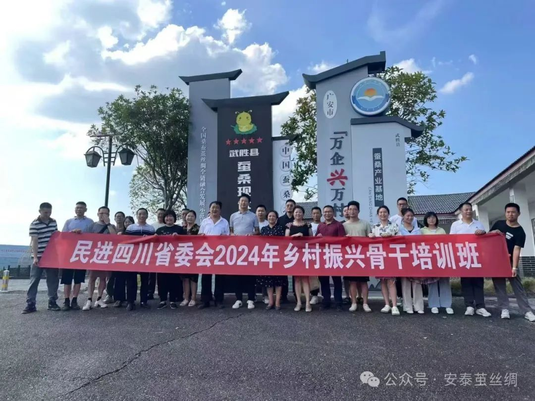 2024年9月12日下午,民進四川省委會秘書長曾從莉、中科院成都分院四級高管李雁琴、民進四川省委會二級巡視員鄭軍、劍閣縣副縣長張梅、四川課標(biāo)科技有限公司董事長李源一行到安泰繭絲綢集團限公司調(diào)研,廣安區(qū)政協(xié)副主席李順英、武勝民進主任陳凱、四川世紀(jì)安泰集團有限公司副總裁、民進成都企業(yè)家聯(lián)誼會常務(wù)副會長李悟、安泰繭絲綢總經(jīng)理文朝鈞陪同調(diào)研。