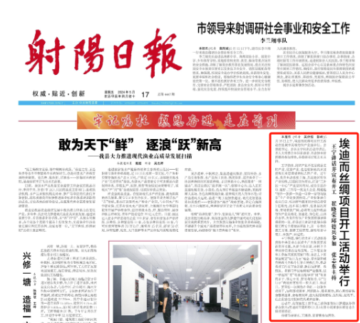5月16日上午,埃迪而絲綢項(xiàng)目開工活動在鹽城市高端紡織產(chǎn)業(yè)園舉行。射陽縣委副書記、縣長王寧出席活動并講話。射陽縣人大常委會主任崔曉榮、射陽縣政協(xié)主席邱德兵參加活動,射陽縣委副書記張志東主持。