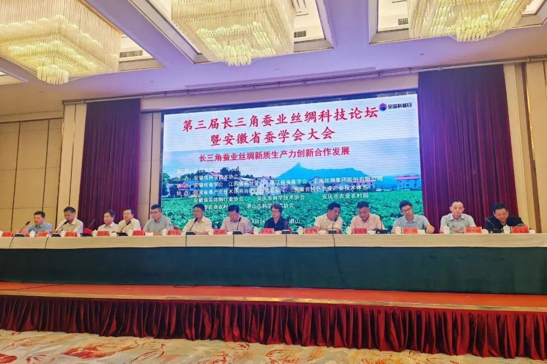 正值2024“全國科普日”宣貫期間,在以習近平新時代中國特色社會主義思想為指導,認真學習貫徹黨的二十屆三中全會精神,進一步學習貫徹2023年11月30日習近平總書記在上海主持召開深入推進長三角一體化發(fā)展座談會上重要講話精神,《商務部關于繭絲綢行業(yè)“十四五”發(fā)展的指導意見》為指引,2024年9月24日,由中國蠶學會、中國絲綢協會指導,安徽省科學技術協會主辦,安徽省蠶學會、江蘇省蠶絲學會、浙江省蠶桑學會、上海絲綢集團股份有限公司承辦,國家蠶桑產業(yè)技術體系合肥綜合試驗站、安徽省特色農業(yè)產業(yè)技術體系、安慶市農業(yè)農村局、安慶市科學技術協會等協辦的第三屆長三角蠶業(yè)絲綢科技論壇暨安徽省蠶學會大會在安徽省潛山市順利舉行。今年會議的主題為“長三角蠶業(yè)絲綢新質生產力創(chuàng)新合作發(fā)展”。