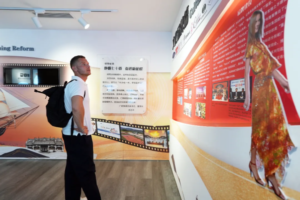 Solstiss公司一行首先參觀了廣東省絲綢紡織集團有限公司(以下簡稱絲紡集團)建企70周年展陳,對絲紡集團發(fā)展壯大、改革創(chuàng)新的歷程表示欽佩。隨后,一行人還參觀了廣東省絲綢博物館常設(shè)展,了解了嶺南絲綢產(chǎn)業(yè)的起源、海上絲綢之路的開拓與發(fā)展、廣東傳統(tǒng)刺繡工藝的演變。欣賞了不同時期不同工藝的刺繡絲織品,比較了中法兩國在不同時期刺繡織造技術(shù)的進步與革新。