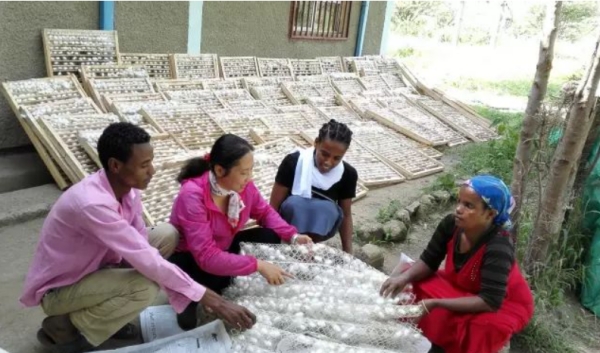 如何把握埃塞俄比亞得天獨(dú)厚的條件發(fā)展桑蠶業(yè)呢?關(guān)鍵是蠶種,陳雄珍通過實(shí)驗比對篩選,找出適合當(dāng)?shù)貧夂虻男Q種,確定了三個抗逆性較強(qiáng)的亞熱帶二化蠶種,指導(dǎo)工人育種養(yǎng)蠶,抽繭成絲。2019年,她指導(dǎo)制成的首批15床蠶絲被被當(dāng)作厚禮,贈送給埃塞俄比亞及非洲聯(lián)盟官員。
