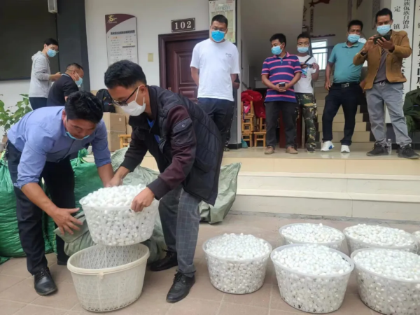 多年來(lái),為了有效突破傳統(tǒng)養(yǎng)蠶模式中,養(yǎng)殖后期僵病膿病集中爆發(fā),降低養(yǎng)殖效益的瓶頸,在發(fā)展方式上進(jìn)行了很多的探索,總結(jié)出了當(dāng)前“小蠶共育,大蠶分養(yǎng)”的“黨組織+合作社+企業(yè)+農(nóng)戶+基地”的發(fā)展模式,實(shí)現(xiàn)了產(chǎn)業(yè)發(fā)展模式的創(chuàng)新和轉(zhuǎn)型,新的發(fā)展模式有效規(guī)避了病害損失,提高了養(yǎng)殖效益,為蠶桑產(chǎn)業(yè)實(shí)現(xiàn)跨越式發(fā)展和規(guī)?;l(fā)展提供了保障。在該發(fā)展模式中,企業(yè)、合作社與農(nóng)戶各自揚(yáng)長(zhǎng)避短,形成優(yōu)勢(shì)互補(bǔ),合作發(fā)展、互利共贏。地方政府積極申報(bào)項(xiàng)目資金支持,免費(fèi)向群眾提供桑苗、底肥和地膜,培育蠶桑產(chǎn)業(yè)基地,全過(guò)程做好技術(shù)服務(wù);爭(zhēng)取滬滇協(xié)作資金和銜接資金支持建設(shè)小蠶繁育中心,建設(shè)完成驗(yàn)收移交后作為村集體資產(chǎn),村集體將集體資產(chǎn)出租給企業(yè),用于開展小蠶共育,企業(yè)按年向村集體支付租金。村集體成立合作社,在蠶桑產(chǎn)業(yè)發(fā)展過(guò)程中做好協(xié)調(diào)服務(wù),參與小蠶繁育中心的管理,在村集體收益中拿出部分用于支持村組蠶桑產(chǎn)業(yè)發(fā)展工作。企業(yè)充分發(fā)揮技術(shù)優(yōu)勢(shì)和設(shè)施設(shè)備優(yōu)勢(shì),1至4齡小蠶在小蠶繁育中心控溫控濕無(wú)菌的環(huán)境中進(jìn)行飼養(yǎng)。待小蠶成長(zhǎng)到4齡眠期,具有較強(qiáng)抗病能力的條件下,再移交給農(nóng)戶進(jìn)行飼養(yǎng),農(nóng)戶養(yǎng)殖12天即可上蔟結(jié)繭,有效縮短了農(nóng)戶的養(yǎng)殖周期,規(guī)避了病害風(fēng)險(xiǎn),提高了農(nóng)戶養(yǎng)殖效益。農(nóng)戶領(lǐng)取小蠶進(jìn)行養(yǎng)殖,支付小蠶繁育中心共育費(fèi)用(或由企業(yè)進(jìn)行賒銷,待蠶繭收購(gòu)過(guò)程中,從蠶繭款中扣除),共育費(fèi)用用于支付共育中心技術(shù)員工資和蠶種購(gòu)買,讓熱愛(ài)蠶桑產(chǎn)業(yè),有養(yǎng)殖經(jīng)驗(yàn)的農(nóng)戶就地在小蠶共育中心務(wù)工,提高農(nóng)戶收入。通過(guò)建立“小蠶共育,大蠶分養(yǎng)”的合作發(fā)展模式,進(jìn)一步完善利益共享、風(fēng)險(xiǎn)共擔(dān)的利益聯(lián)結(jié)機(jī)制,確保了各方積極性的調(diào)動(dòng)和蠶桑產(chǎn)業(yè)的健康發(fā)展。根據(jù)縣委縣政府制定印發(fā)了《耿馬自治縣現(xiàn)代化邊境小康村建設(shè)蠶桑產(chǎn)業(yè)發(fā)展三年行動(dòng)方案》要求,通過(guò)三年的發(fā)展,到2025年,邊境地區(qū)建設(shè)標(biāo)準(zhǔn)化桑園10000畝以上,屆時(shí),全縣其他鄉(xiāng)(鎮(zhèn))同步發(fā)展蠶桑產(chǎn)業(yè),全縣桑園面積達(dá)25000畝以上,年生產(chǎn)鮮繭1000噸以上,引進(jìn)繅絲廠進(jìn)行生產(chǎn)加工,延伸產(chǎn)業(yè)鏈,提高附加值,促進(jìn)全縣蠶桑產(chǎn)業(yè)持續(xù)穩(wěn)定發(fā)展。