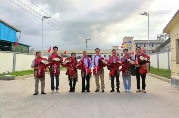 集團(tuán)總裁助理黃小軍、嘉欣絲綢(柬埔寨)基地相關(guān)負(fù)責(zé)人,實(shí)居省當(dāng)?shù)乜h長(zhǎng),嘉欣絲綢(柬埔寨)工業(yè)園核心管理人員等熱烈歡迎,感謝盛全生副主席一行在國(guó)慶來臨之際為公司駐柬人員送去節(jié)日的問候。
