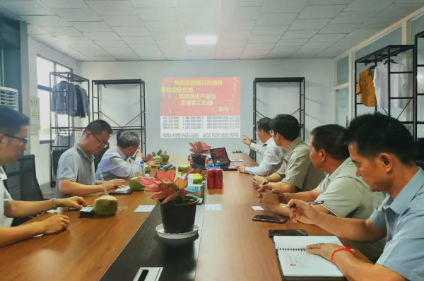 調(diào)研團(tuán)在黃總的陪同下參觀了整個(gè)工業(yè)園,并深入車間了解整個(gè)生產(chǎn)流程,在座談中就嘉欣絲綢柬埔寨基地投資建設(shè)細(xì)節(jié)、招工形勢(shì)、品牌定位及產(chǎn)品類型、訂單情況等方面進(jìn)行了交流。