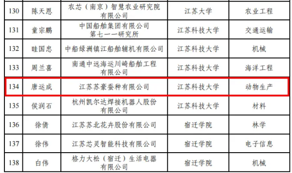 近日,江蘇省委人才辦、省教育廳、省科技廳、省人力資源社會(huì)保障廳聯(lián)合開(kāi)展2024年江蘇省產(chǎn)業(yè)教授(兼職)選聘工作,經(jīng)過(guò)個(gè)人申報(bào)、高校推薦、資格審核,蘇豪股份蠶種公司副總經(jīng)理、江蘇工匠唐運(yùn)成成功受聘于江蘇科技大學(xué)。