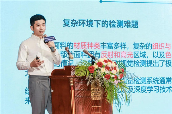 “機(jī)器視覺檢測(cè)能夠模擬人類視覺系統(tǒng),對(duì)運(yùn)行中的紡織機(jī)器進(jìn)行圖像采集并識(shí)別有無(wú)缺陷發(fā)生?!苯B興織蛛物聯(lián)科技有限公司總經(jīng)理呂華龍以《機(jī)器視覺檢測(cè)在針紡行業(yè)的應(yīng)用與實(shí)踐》為題,結(jié)合應(yīng)用案例,就機(jī)器視覺檢測(cè)技術(shù)在紡織行業(yè)的應(yīng)用場(chǎng)景,技術(shù)的挑戰(zhàn)與發(fā)展趨勢(shì)進(jìn)行了分享。他介紹,機(jī)器視覺檢測(cè)技術(shù)主要用于面料瑕疵、染色均勻性和紗線質(zhì)量檢測(cè),通過該技術(shù)可提高檢測(cè)效率,降低成本與提升質(zhì)量,實(shí)現(xiàn)智能化生產(chǎn)。今后,行業(yè)發(fā)展將朝著智能化、自動(dòng)化、集成化方向發(fā)展。