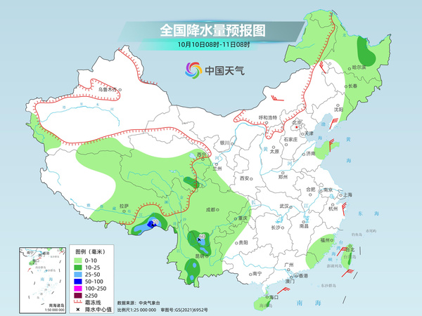 今起三天,西南地區(qū)陰雨模式持續(xù),中東部大部則以晴或多云的天氣為主。具體來看,今天,內(nèi)蒙古東北部、黑龍江西南部、西藏東南部、四川盆地中南部、云南中北部等地部分地區(qū)有中到大雨,其中,西藏東南部等地部分地區(qū)有暴雨。