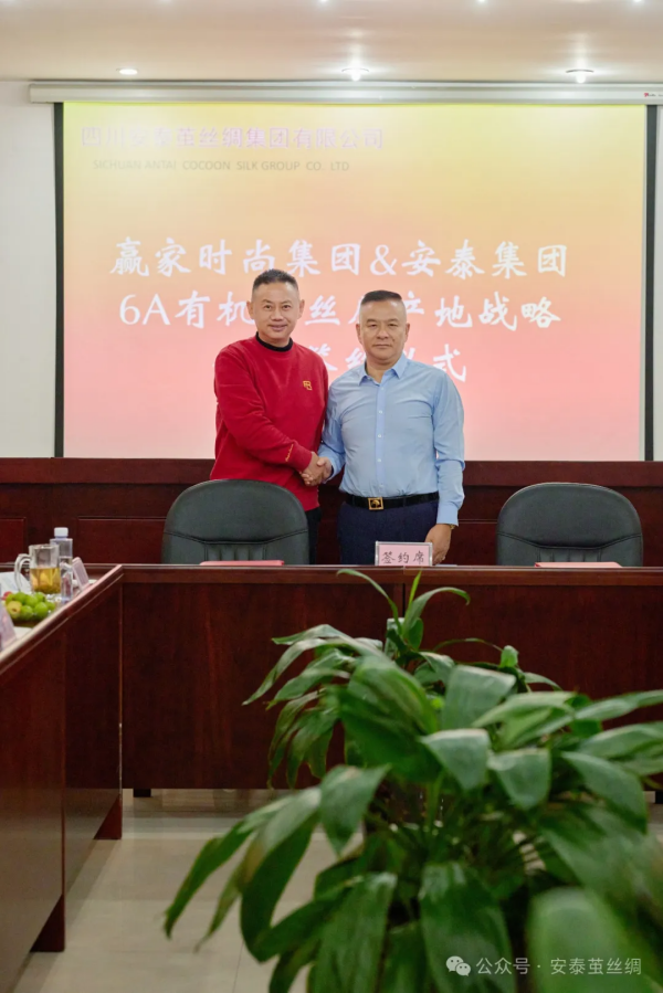 當(dāng)日下午,在安泰繭絲綢集團(tuán)公司會(huì)議室舉行了戰(zhàn)略合作溝通及簽約儀式,雙方對(duì)未來(lái)合作方向進(jìn)行了深入的探討,并簽訂了戰(zhàn)略合作協(xié)議。贏家時(shí)尚集團(tuán)董事局主席金明先生表示,贏家將持續(xù)提升材質(zhì)和強(qiáng)化品質(zhì)意識(shí),將“品質(zhì)為先”的理念貫穿到每一個(gè)環(huán)節(jié),現(xiàn)場(chǎng)與絲廠、綢廠各環(huán)節(jié)達(dá)成共識(shí),并建立長(zhǎng)期友好的戰(zhàn)略合作關(guān)系。安泰集團(tuán)董事長(zhǎng)唐定云先生也表示,此次與贏家時(shí)尚集團(tuán)的戰(zhàn)略合作,標(biāo)志著安泰繭絲綢集團(tuán)在高端絲綢材質(zhì)供應(yīng)領(lǐng)域邁出了堅(jiān)實(shí)的一步。他強(qiáng)調(diào),安泰繭絲綢集團(tuán)將全力支持贏家時(shí)尚集團(tuán)對(duì)真絲材質(zhì)的需求,不僅提供高品質(zhì)的生絲,還將在技術(shù)研發(fā)、產(chǎn)品創(chuàng)新等方面與贏家時(shí)尚集團(tuán)緊密合作,共同推動(dòng)絲綢產(chǎn)業(yè)的升級(jí)和發(fā)展。唐定云先生還提到,安泰繭絲綢集團(tuán)將借此機(jī)會(huì),進(jìn)一步拓展國(guó)內(nèi)外市場(chǎng),提升品牌影響力,與贏家時(shí)尚集團(tuán)攜手共創(chuàng)絲綢行業(yè)的美好未來(lái)。