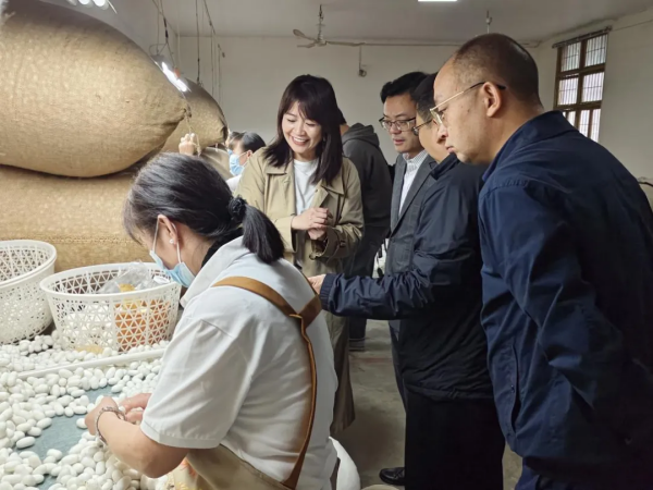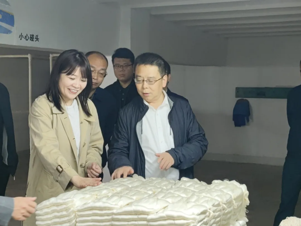 2024年10月11日,綿陽(yáng)市副市長(zhǎng)吳明禹到涪城區(qū)調(diào)研督導(dǎo)分管領(lǐng)域工作。吳明禹一行先后來(lái)到綿陽(yáng)天虹絲綢有限責(zé)任公司和綿陽(yáng)市豐谷制絲有限公司對(duì)涪城區(qū)繭絲綢產(chǎn)業(yè)發(fā)展情況開(kāi)展實(shí)地調(diào)研。綿陽(yáng)市農(nóng)業(yè)農(nóng)村局局長(zhǎng)張廷偉,涪城區(qū)委書(shū)記、區(qū)長(zhǎng)張?zhí)搼?,區(qū)委常委、副區(qū)長(zhǎng)劉琳參加調(diào)研;天虹絲綢、豐谷制絲總經(jīng)理薛憶陪同調(diào)研。