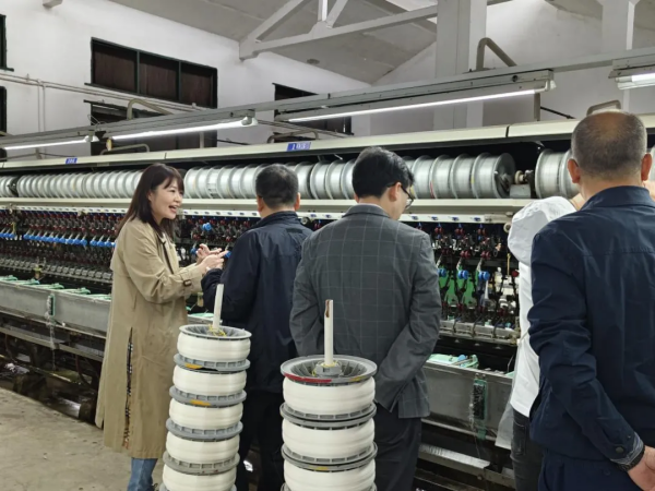 隨后來(lái)到豐谷制絲,薛憶帶領(lǐng)大家察看繅絲生產(chǎn)線,介紹絲廠管理運(yùn)作模式,講解蠶繭經(jīng)精細(xì)工序變成優(yōu)質(zhì)生絲的繅絲生產(chǎn)加工全過(guò)程。在生絲出口方面,薛憶談到公司在積極拓展海外市場(chǎng)的方面所做的努力與成果,以及生絲在國(guó)際市場(chǎng)的競(jìng)爭(zhēng)力和良好口碑,還提及公司在產(chǎn)品質(zhì)量把控、包裝設(shè)計(jì)等方面的努力創(chuàng)新。