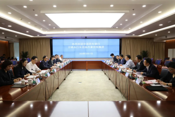 10月17日上午,中國民生銀行黨委副書記、副董事長、行長王曉永一行到訪蘇豪控股集團(tuán)。集團(tuán)黨委書記、董事長周勇熱情接待,雙方就推動(dòng)銀企合作進(jìn)行深入交流。集團(tuán)總會(huì)計(jì)師、黨委委員周洪溶參加座談。