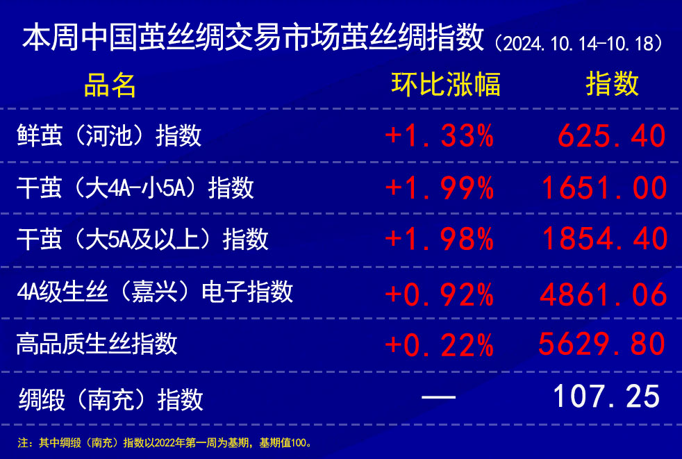 本周中國繭絲綢交易市場繭絲綢指數(shù)