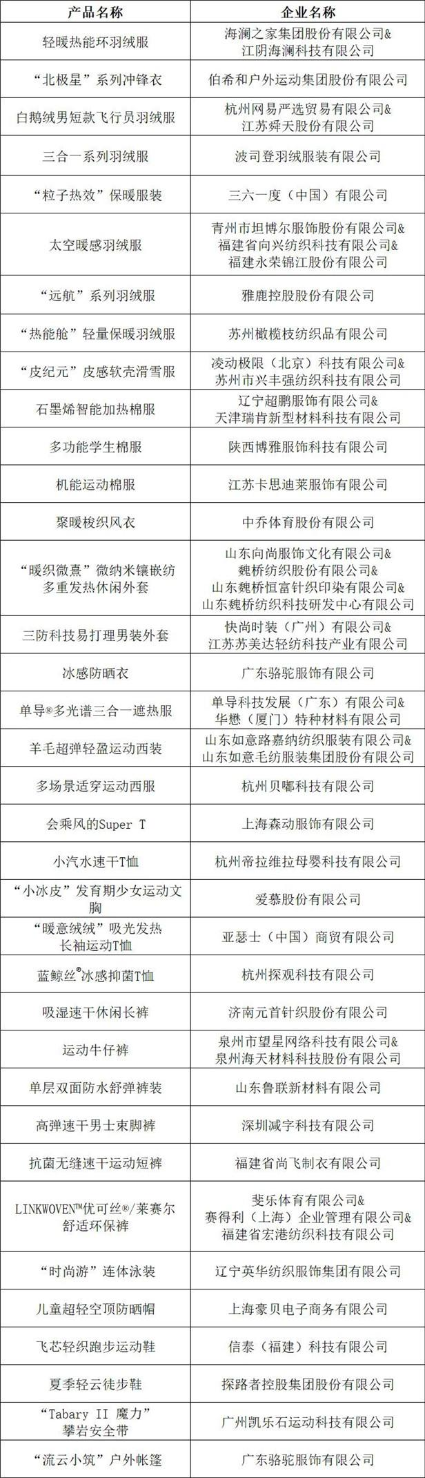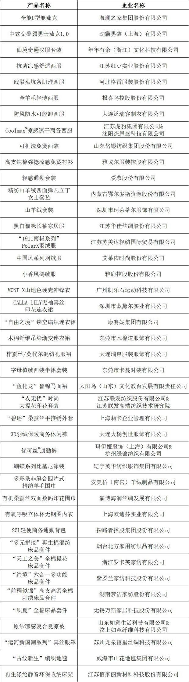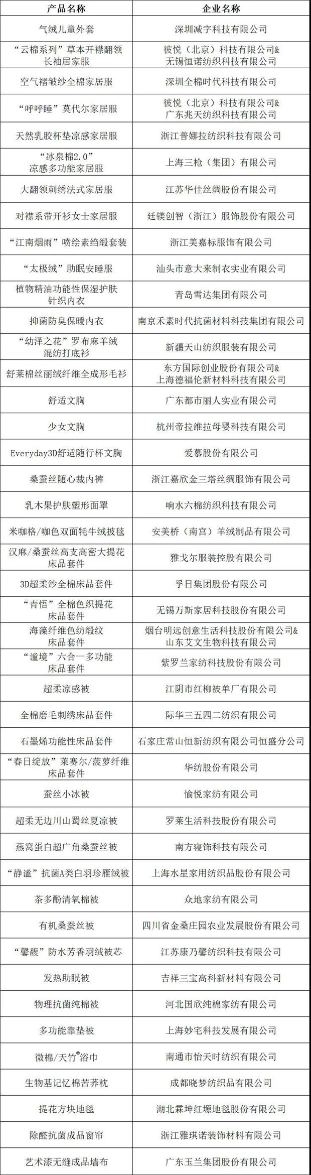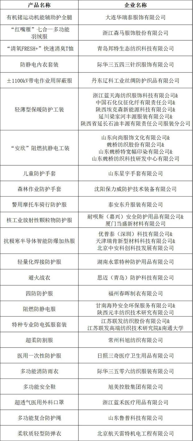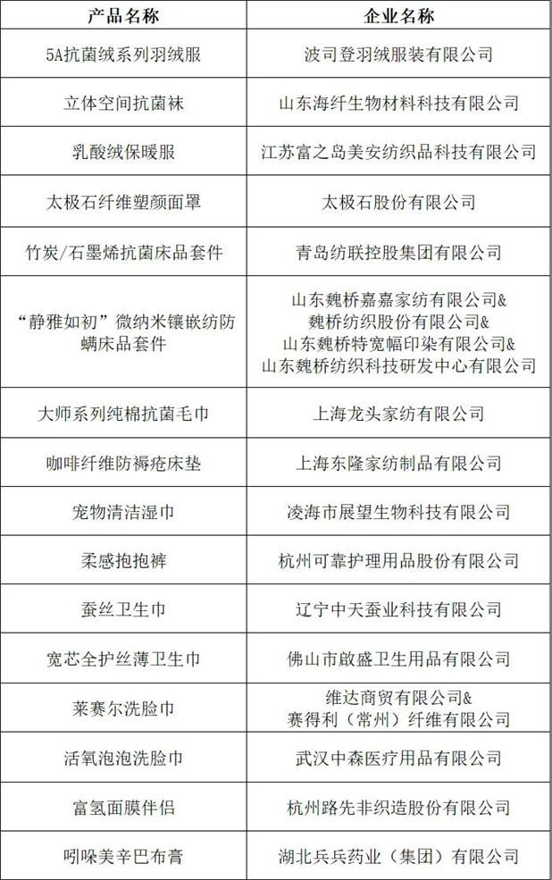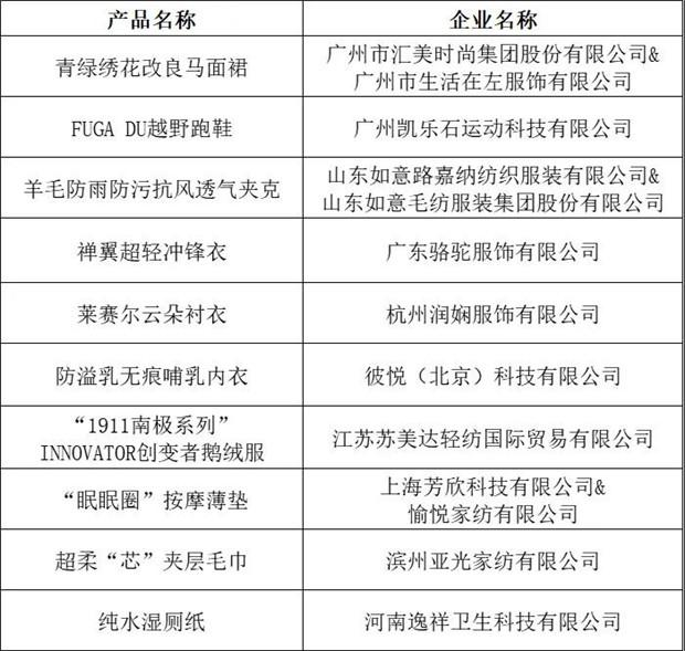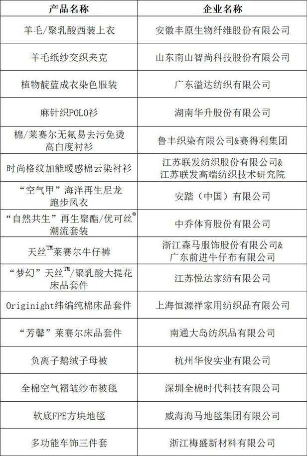 十大類紡織創(chuàng)新產(chǎn)品“持續(xù)創(chuàng)新單位”名單