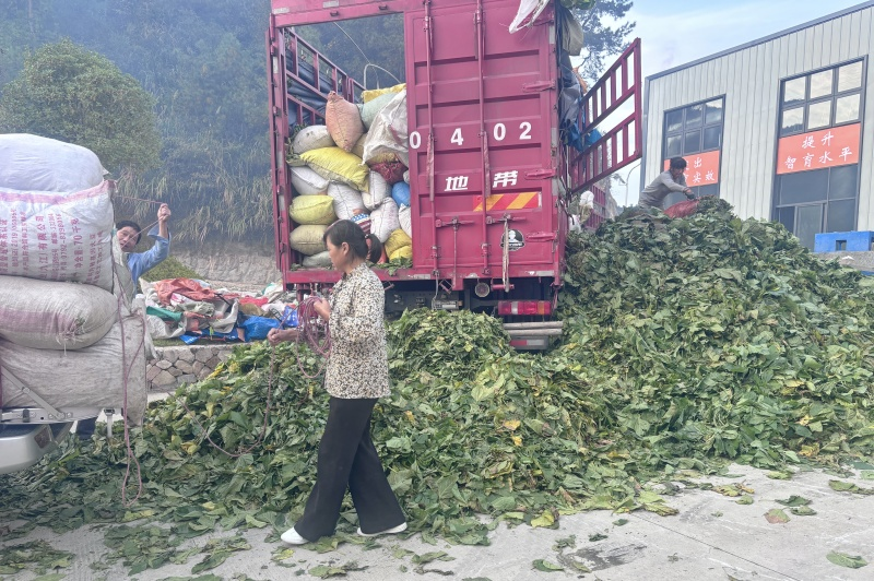 王春霞大嬸滿面笑容地跟我們介紹:“養(yǎng)蠶季過去了,緣豐公司還能收購我們樹上剩的最后一批葉子,這真是件大好事!現(xiàn)在我們每天都有活兒干,趕著桑葉老之前摘下來賣,一斤能賣到6毛錢,一天賣桑葉能賣200多元,天氣好的時(shí)候甚至能賣到500多元?!睋?jù)悉,往年養(yǎng)蠶季過了,再加上天冷霜打,最后樹上的桑葉就只能自然脫落,現(xiàn)在有公司收購,群眾種桑葉也實(shí)現(xiàn)了“多掙一筆錢”。周邊村落的村民得知消息后,也紛紛加入送桑葉的行列中,再遠(yuǎn)鄉(xiāng)鎮(zhèn)的居民也不甘示弱,用貨車裝滿一起送到這里。50公里外的白帽鎮(zhèn)村民陳大伯興奮地說:“我一天能送兩車桑葉過來,大約有1500多斤,還幫忙把附近鄰居家的一起帶過來賣?!?o:p>