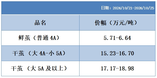 本周高品位生絲協(xié)作單位成交價(jià)格區(qū)間