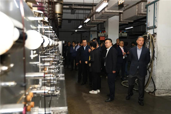與會代表對滁州興邦聚合彩纖有限公司聚酯和纖維生產(chǎn)流程與環(huán)節(jié),以及滁州霞客無染彩色紡有限公司色紡紗線生產(chǎn)各工序進行了參觀,與會代表們對在線添加原液著色生產(chǎn)有色纖維,進而紡出有色紗線產(chǎn)生了濃厚的興趣。