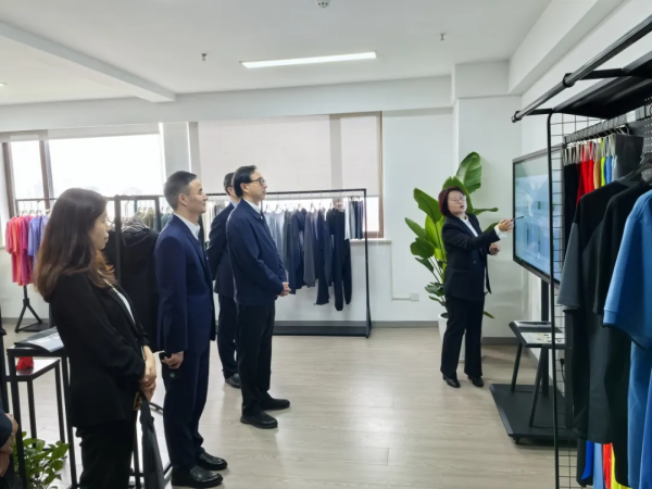 周勇首先參觀了位于省紡織工業(yè)協(xié)會的省紡織研究所南京研創(chuàng)中心,聽取了省紡織研究所在高端服裝設(shè)計(jì)、紡織面料研發(fā)、海外市場開拓、跨境電商發(fā)展及協(xié)會內(nèi)部協(xié)同等方面情況,勉勵團(tuán)隊(duì)不斷強(qiáng)化科技創(chuàng)新和設(shè)計(jì)研發(fā),持續(xù)發(fā)揮協(xié)會功能作用,深化成員企業(yè)間的協(xié)同協(xié)作,聚力推動產(chǎn)研融合,促進(jìn)提升江蘇省高端紡織先進(jìn)制造業(yè)集群發(fā)展水平。