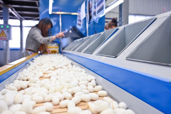 “你可以看到它的顏色非常潔白,絲更長(zhǎng)更有韌性?!奔{福瑞公司繅絲廠負(fù)責(zé)人李裕丞拿起一粒蠶繭介紹說,等級(jí)提高后,蠶絲的價(jià)值每噸可以提高4萬(wàn)元,整體提升了公司的產(chǎn)值。