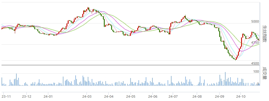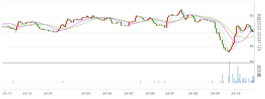 今日(2024年10月30日,周三)中國(guó)繭絲綢交易市場(chǎng)生絲電子指數(shù)上漲0.15%收于4804.68點(diǎn)。B絲2022D(商檢4A級(jí)生絲):241125合約上漲0.06萬(wàn)元報(bào)收于48.21萬(wàn)元;250325合約上漲0.33萬(wàn)元報(bào)收于48.27萬(wàn)元;250925合約上漲0.03萬(wàn)元報(bào)收于47.64萬(wàn)元。