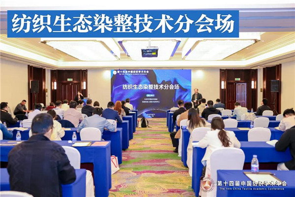 紡織生態(tài)染整技術分會場由生態(tài)紡織重點實驗室、國家染整工程技術研究中心承辦。江南大學王強教授和東華大學馮雪凌研究員主持會議。東華大學毛志平教授、大連理工大學馬威教授、武漢紡織大學曹根陽教授、天津工業(yè)大學鞏繼賢教授、青島大學房寬峻教授、蘇州大學關晉平教授、江南大學王平教授、東華大學YP色彩研究中心許仲哲主任分別為年會作題為“聚酯纖維筒子紗超臨界CO2流體無水染色技術”“一維結構生色材料的構筑及應用研究”“芳香族高性能纖維顏色構建及應用實踐”“聚酯纖維的生物降解與生物加工”“萊賽爾纖維防原纖化與功能化新策略”“從國際標準視角看紡織可持續(xù)發(fā)展”“生物酶催化氧化絲素蛋白功能化改性加工”“中國色彩科學基礎理論的再研究及產業(yè)內外部的影響”的學術報告。