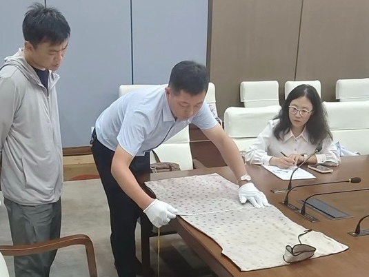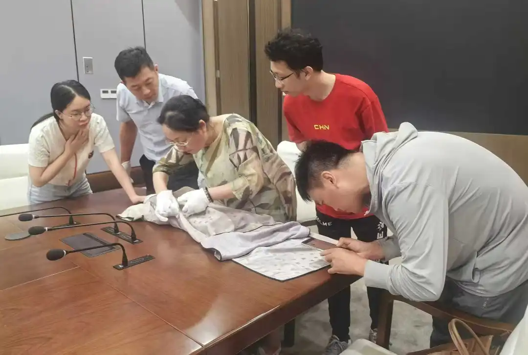 紅色教育活動(dòng)結(jié)束后,富安鎮(zhèn)黨委主動(dòng)協(xié)調(diào)多方資源,緊鑼密鼓開展仿制旗袍工作,馬含月多次帶著面料設(shè)計(jì)師、裁縫去館里察看文物原件,一個(gè)多月時(shí)間,富安鎮(zhèn)成功完成旗袍仿制?!氨本┦渍故?月24日,12日我們收到旗袍仿制件,立即送往北京?!毙滤能娂o(jì)念館陳列展覽部主任周振華告訴記者,仿制件和原件相似度非常高,肉眼看不出差別,大家為之深深感動(dòng),更是心生敬意,這件旗袍飽含很多人的心血,離不開富安鎮(zhèn)黨委的大力支持,更離不開富安人的全力以赴。