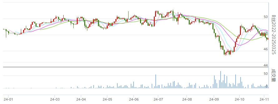 20/22D商檢4A級生絲:今日(周三)生絲指數(shù)稍有回升但仍收于主要均線下方,盤面各遠近合約價格各有漲跌,主力合約250325持倉量有所增加。