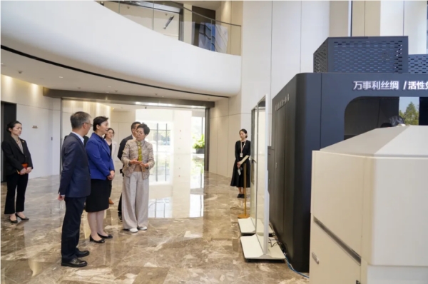 11月6日,浙江省委常委、統(tǒng)戰(zhàn)部部長王文序,省委統(tǒng)戰(zhàn)部副部長、省工商聯黨組書記鄭敏強一行到訪萬事利科創(chuàng)中心,就絲綢產業(yè)科技創(chuàng)新、新質生產力發(fā)展情況展開調研。